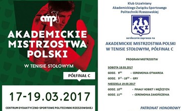 Od 17 do 19 marca br. potrwają zorganizowane przez Klub Uczelniany AZS Politechniki Rzeszowskiej strefowe eliminacje drużynowe Akademickich Mistrzostw Polski w Tenisie Stołowym Kobiet i Mężczyzn.