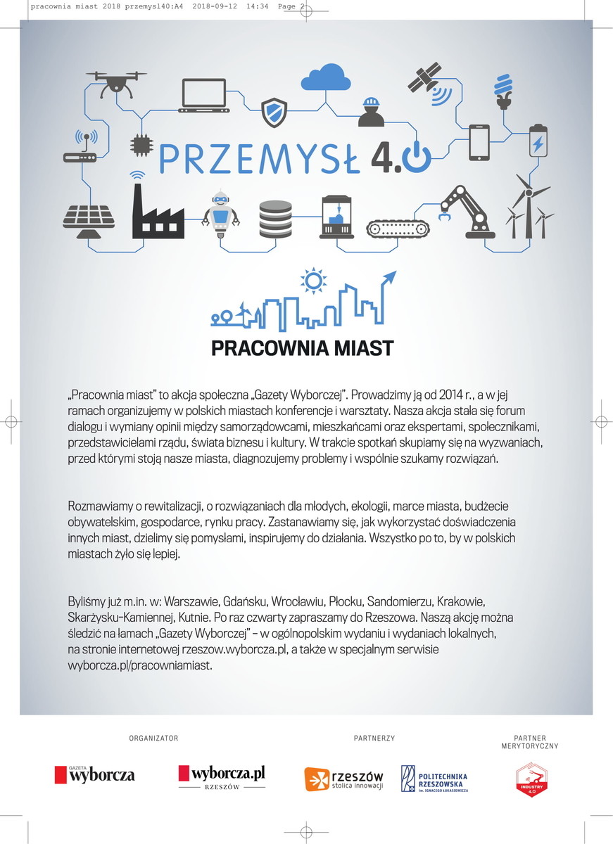 Gazeta Wyborcza, Miasto Rzeszów oraz Politechnika Rzeszowska zapraszają na konferencję „Pracownia miast: Rzeszów”, która odbędzie się w czwartek, 11 października w budynku Politechniki Rzeszowskiej przy al. Powstańców Warszawy 12 w Rzeszowie.
