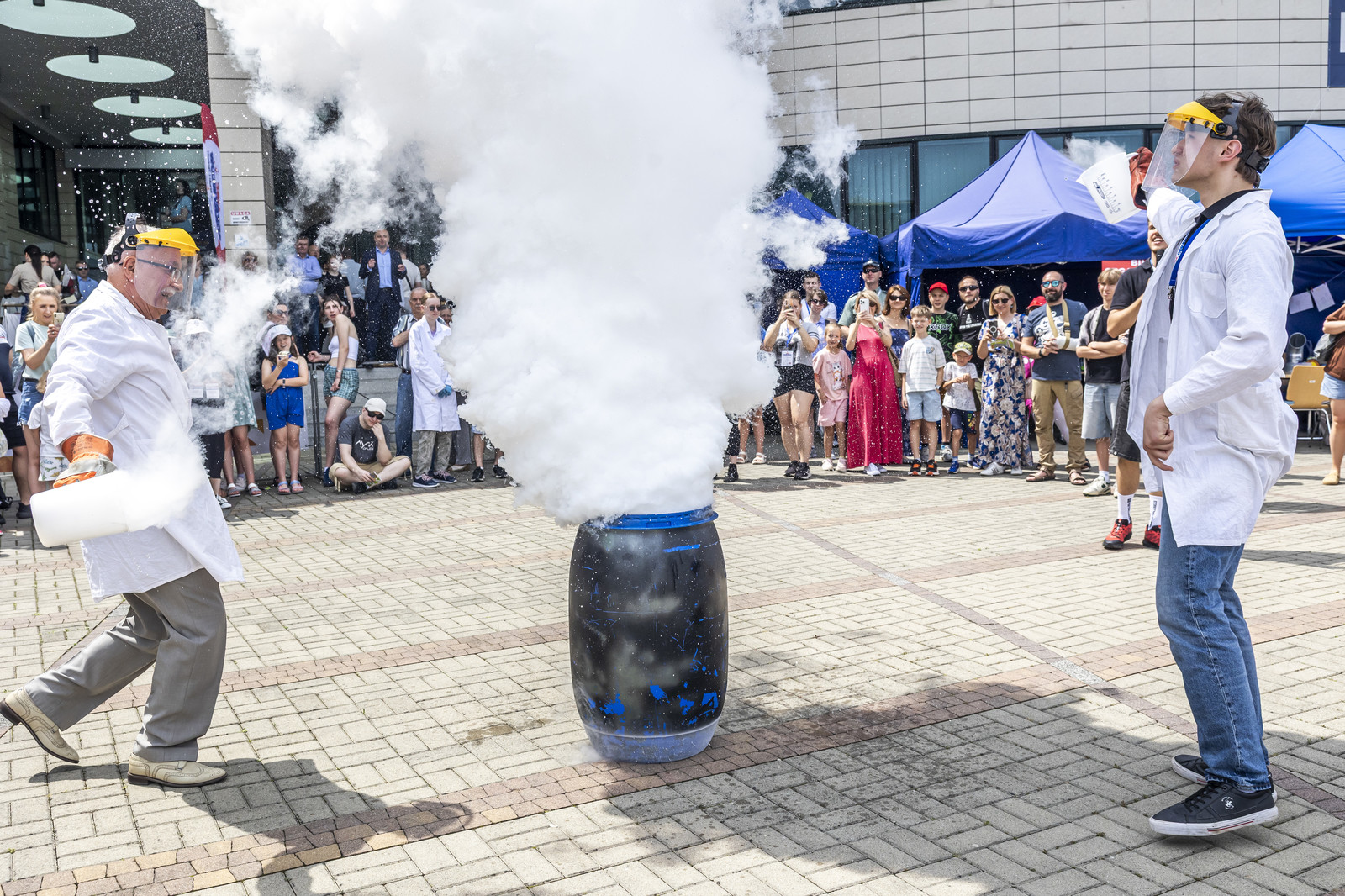 Na miłośników wybuchowych atrakcji czekali studenci Koła Naukowego „ESPRIT”, którzy przygotowali spektakularne pokazy chemiczne. Uczestnicy mogli również wysłuchać ciekawych wykładów –„Kosmiczną archeologię” opisywała Magdalena Ithilnar Stawniak, postać „Wyspiańskiego – Odkrywcy” przybliżyła Jolanta Bobala, a o „Prompt engineering, czyli jak dogadać się ze sztuczną inteligencją?” opowiedział Marcin Krawczyk. Mali i duzi odkrywcy spotkali się również z Magda „Cathia” Kozłowska zabrała małych i dużych odkrywców w podróż po galaktyce w ramach prelekcji nt. „Gwiezdnowojenna droga bohatera, czyli monomit w Gwiezdnych Wojnach”. Pokazy fizyczne Koła Naukowego FOTON („Jak fizyka wprawia świat w ruch”) oraz pokazy wysokich napięć i galeria lamp plazmowych Teslacoil jak zawsze przyciągnęły tłumy widzów. Na „Noc z gwiazdami”, czyli na finałowy pokaz pikniku zaprosili Małgosia Wilczak i Paweł Pasterz wraz z gościem specjalnym Maciejem Milczanowskim.