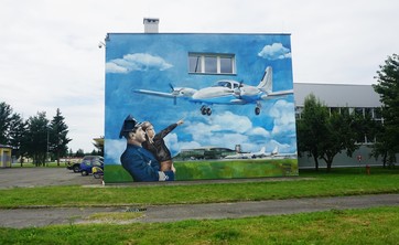 Na jednej ze ścian budynków Ośrodka Kształcenia Lotniczego powstał mural lotniczy. Malowidło ma przypominać o lokalnych lotniczych tradycjach, popularyzować lotnictwo i inspirować przyszłych adeptów.