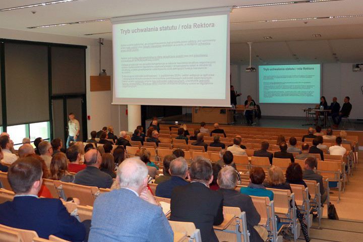 W pierwszej części spotkania przewodniczący Bogusław Dołęga przedstawił syntetyczną prezentację dotyczącą zgłoszonych przez pracowników wniosków do projektu Statutu. W kolejnej części spotkania zabrał głos prof. Grzegorz Budzik, który omówił główne założenia Statutu w odniesieniu do Ustawy o Szkolnictwie Wyższym.